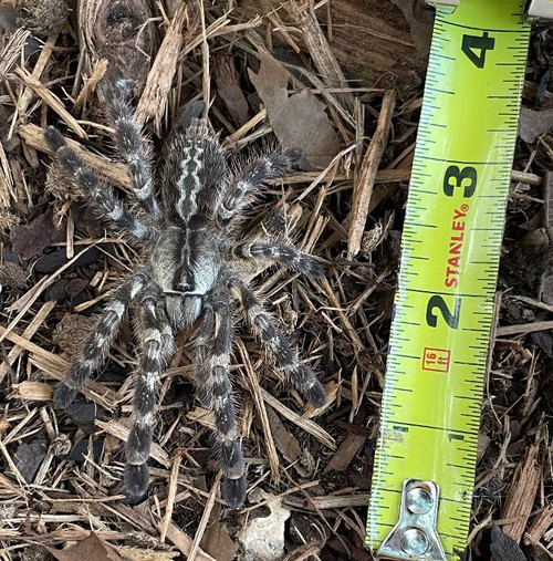 We have some captive bred Indian Ornamental Tarantula for sale (Poecilotheria regalia). They are thriving. The tape measure in photo is to give you ide aof hte size currently in stock of the Indian Ornamental Tarantulas for sale .